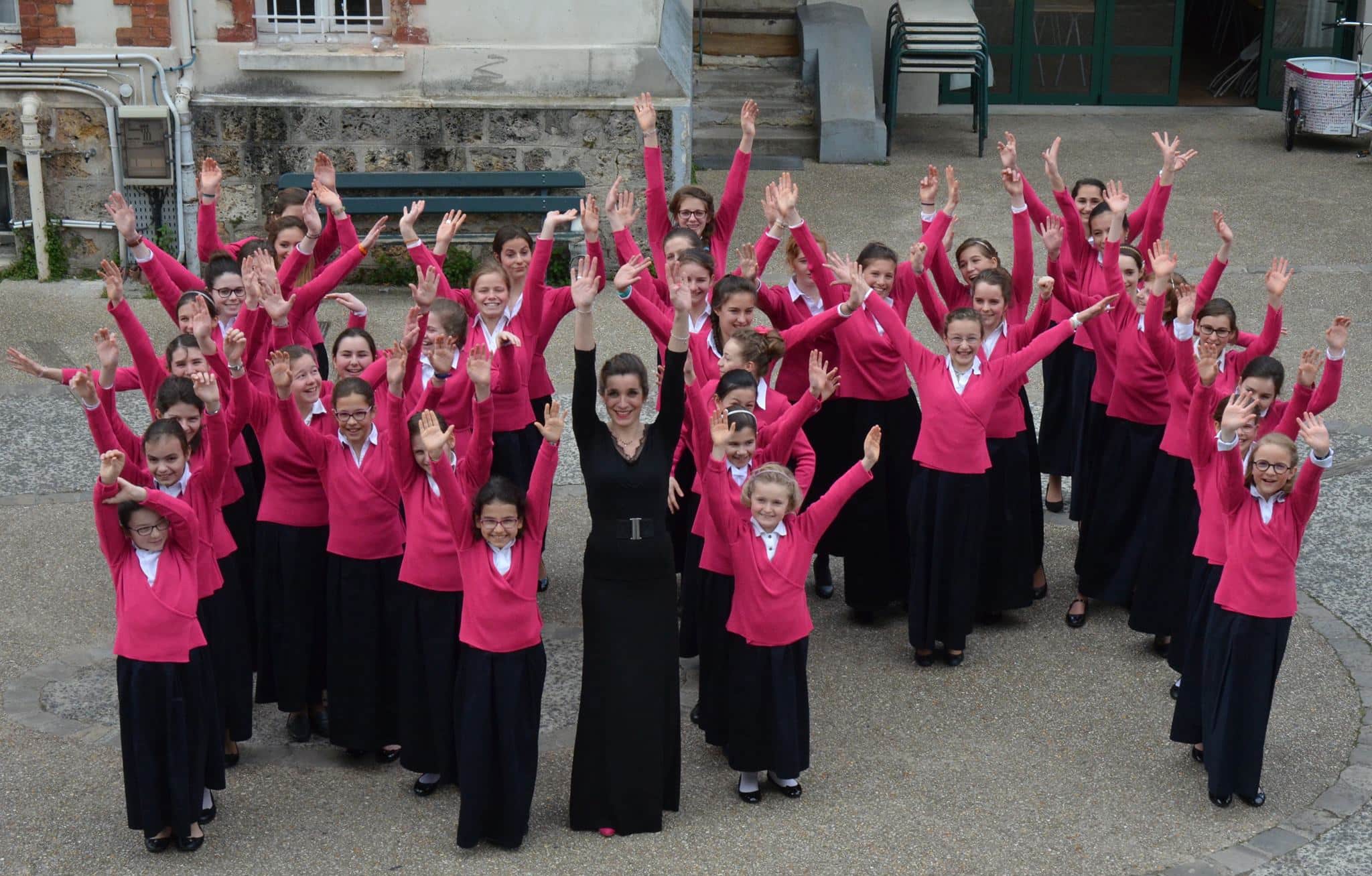 B : Mon rêve a toujours été de diriger un chœur d’enfants et plus précisément de garçons car les voix sont magnifiques. Et je voulais également permettre à des enfants de vivre les bons moments que j’avais moi-même passés avec les Petits Chanteurs. J’ai postulé initialement pour diriger le chœur des Petits Chanteurs de Saint Dominique, chœur de garçons rattaché à l’école Saint Dominique au Pecq-sur-Seine, et finalement ma candidature a été retenue pour créer le chœur de filles. Le chœur existe donc depuis 3 ans. Au début elles étaient 39, elles sont maintenant une soixantaine, âgées de 8 à 17 ans. Il s’agit donc d’un chœur à voix égales, pas de voix d’hommes. Cette constitution permet aux chanteuses souvent musiciennes ainsi qu’aux parents de découvrir de belles pièces peu connues car les chœurs comme celui-ci sont peu courants.